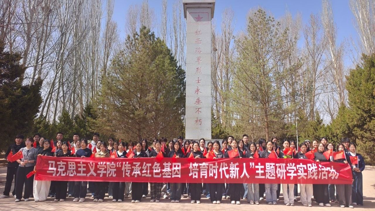 在龙渠烈士陵园,师生肃立默哀,向革命英烈敬献花篮,致以最深切的缅怀;学生代表发言:“必将铭记先烈遗志,让青春在强国征程中绽放绚丽之花!”随后,一堂特殊的微党课在陵园现场开讲,教师结合红西路军征战河西的悲壮史诗,深刻阐释了理想信念的磅礴伟力,引导学生从苦难辉煌中汲取前行智慧。